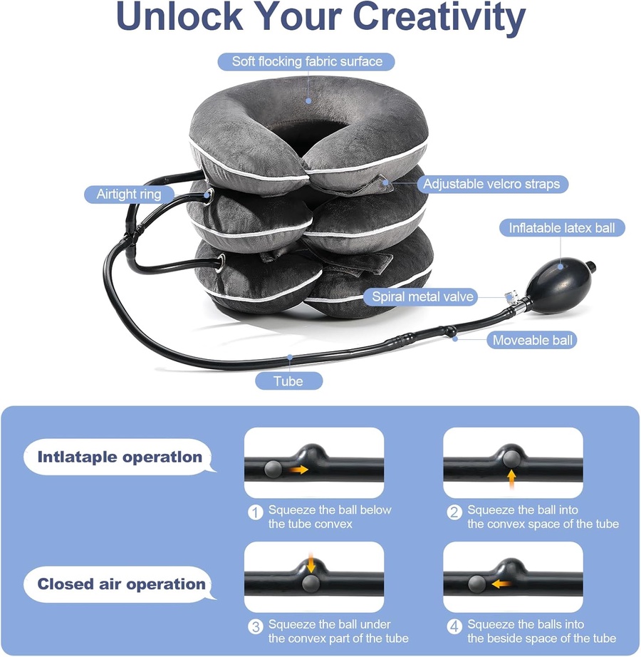 - Triple-Tier Kinetic Traction: A synchronized 3-level inflation system that offers graduated support, precisely lifting the cranium to relieve pressure on the intervertebral discs.